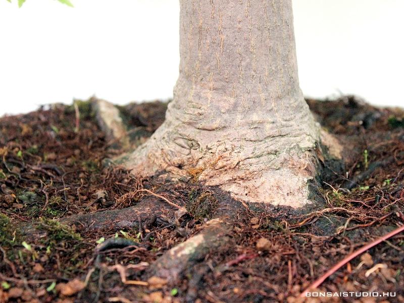 Japán juhar bonsai. Kiforrott, gazdag ágrendszerrel, látványos törzzsel és gyökérrendszerrel / nebari - val rendelkező bonsai fa. Kiállítás érett bonsai, mely gyönyörű kompakt lombsátrat alkot tavaszi kihajtásától őszig. Gyönyörű tavaszi és őszi lombszíne miatt is kedvelt bonsai, levelei és finom ágrendszere miatt nem csak léptékhelyes, de rendkívül részletgazdag látványt nyújt.
