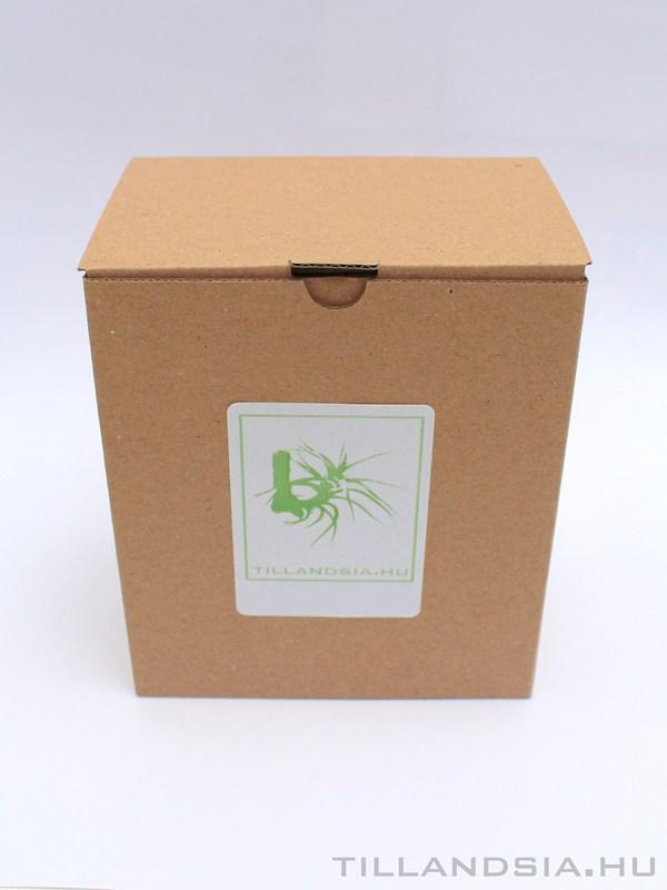 Papírba és kartondobozba csomagolt epifita növény, mely az airplant elnevezésű szobában is tartható virágzók közé tartozik. Az enteriőr dekorálásban méltán kedvelt élő növény tartása egyszerű és nem csak trendi, de különlegesen szép és egyedi dolog.